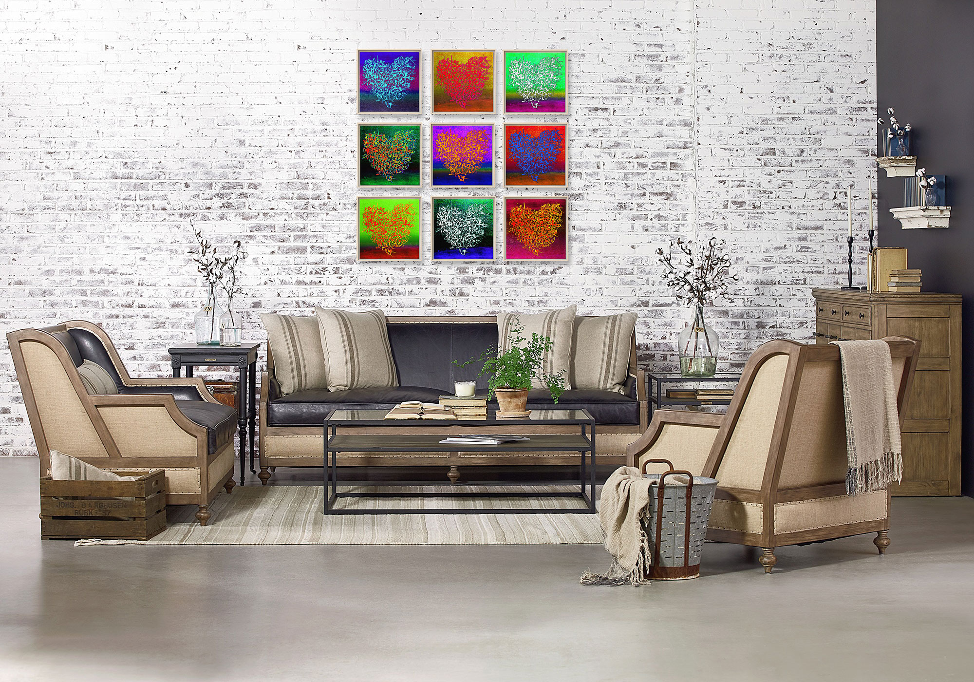 Queste opere sono realizzate con tecnica mista, stampa su tela di altissima qualità, durevole e resistente alla luce (il colore non subirà cambiamenti negli anni), con interventi pittorici che creano di ogni opera un pezzo unico numerato, con una tiratura di 100 copie. Le misure sono 28×28 cm con cornice “tedesca” in legno naturale.